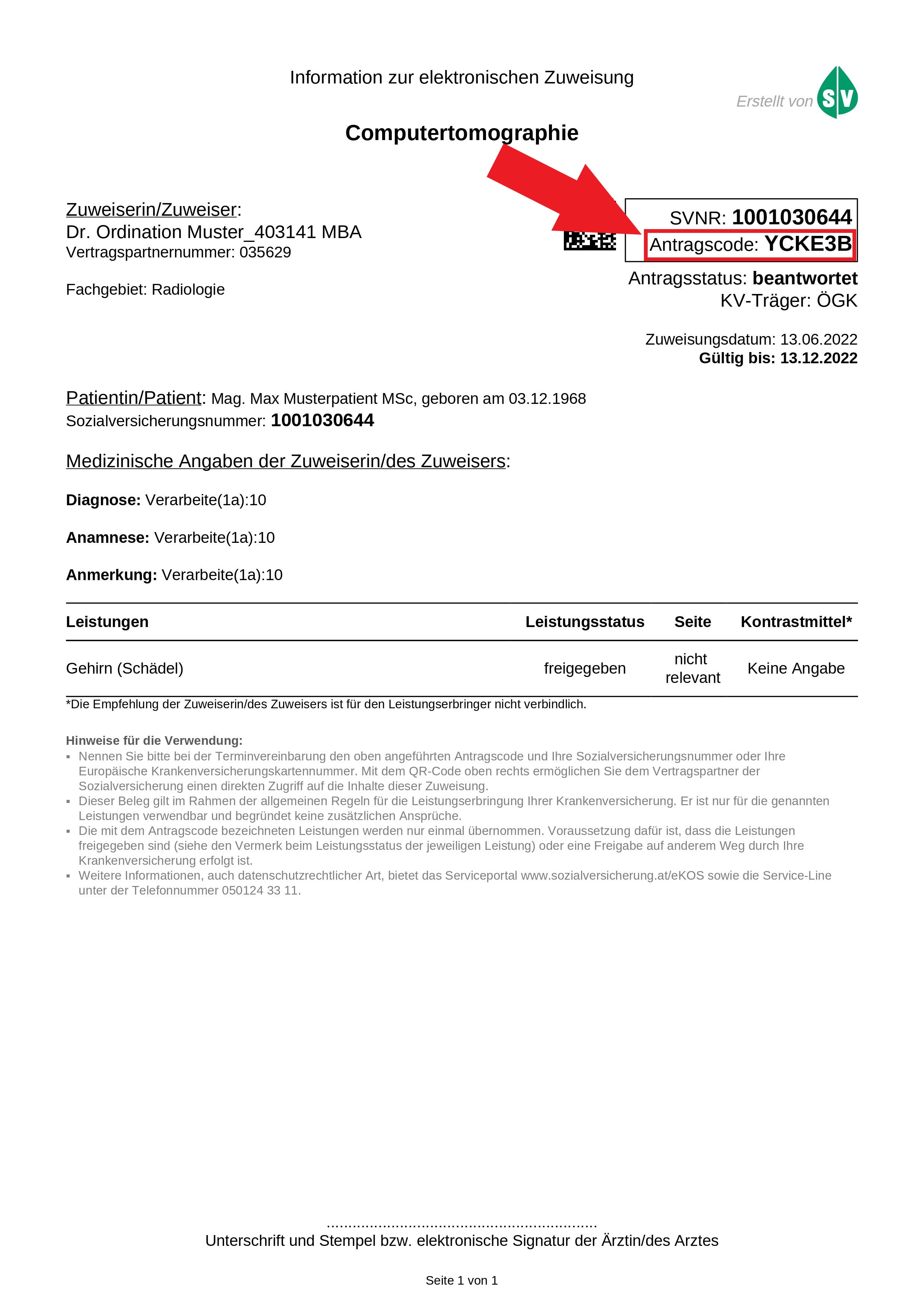 Sie haben von Ihrem Arzt eine elektronische Zuweisung (eKOS Antragscode) erhalten und benötigen einen Untersuchungstermin.